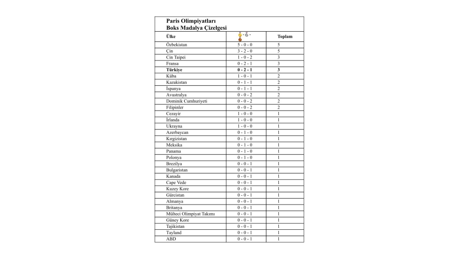 OLİMPİYATLARDA TÜRKİYE BOKS BRANŞINI 67 ÜLKE İÇİNDE ÜÇÜNCÜ SIRADA TAMAMLADI